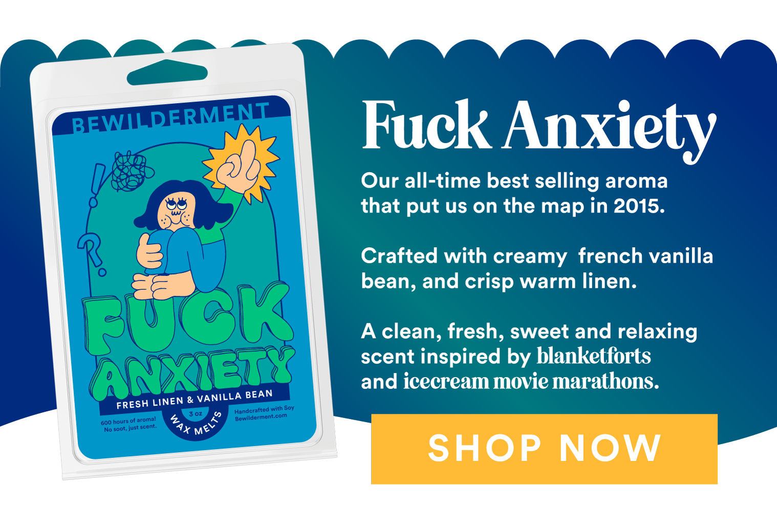 LIMITED TIME: Grab your first 15 wax melts for our best bundled price — plus free shipping — and an EXTRA 20% OFF your first order with code WELCOME20.