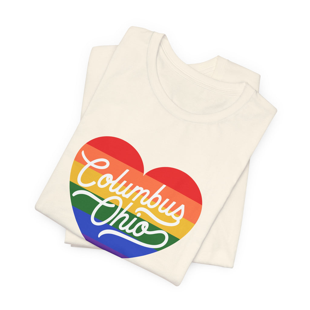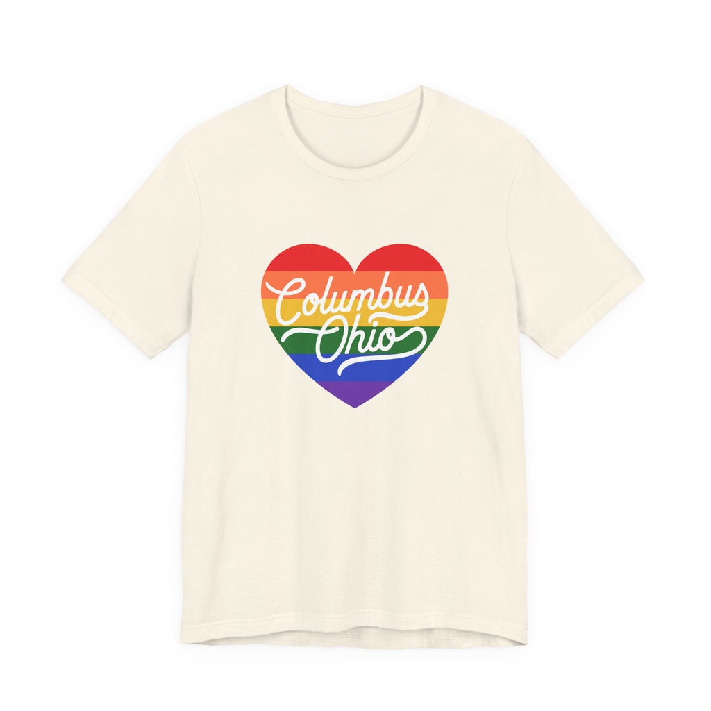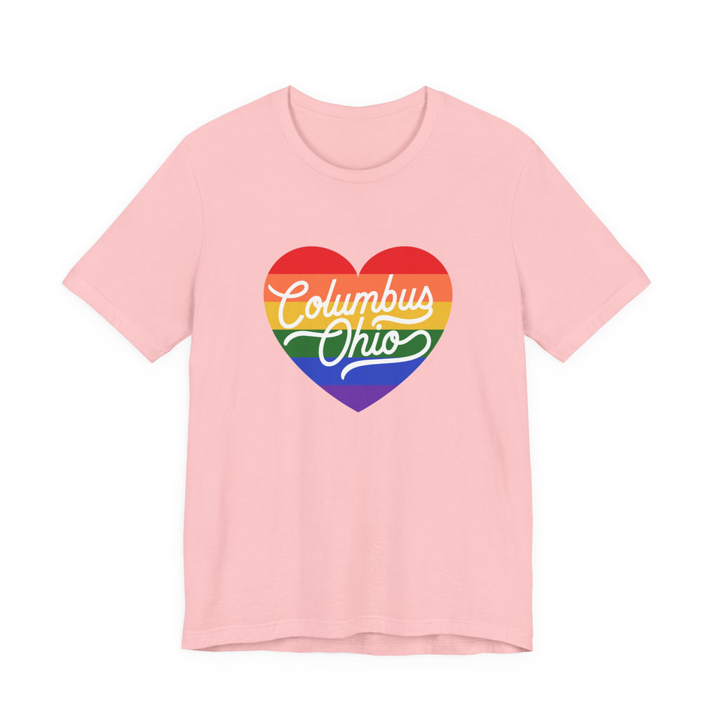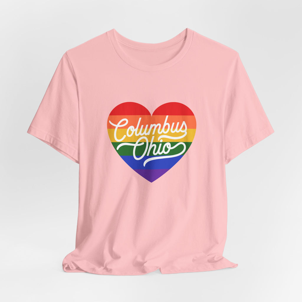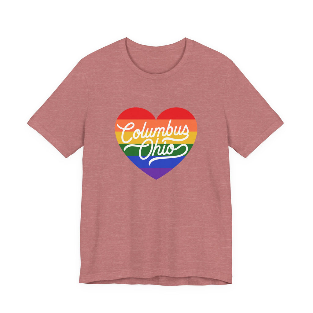 - Rainbow heart chest print with crisp DTF/DTG printing options for vibrant, detailed color