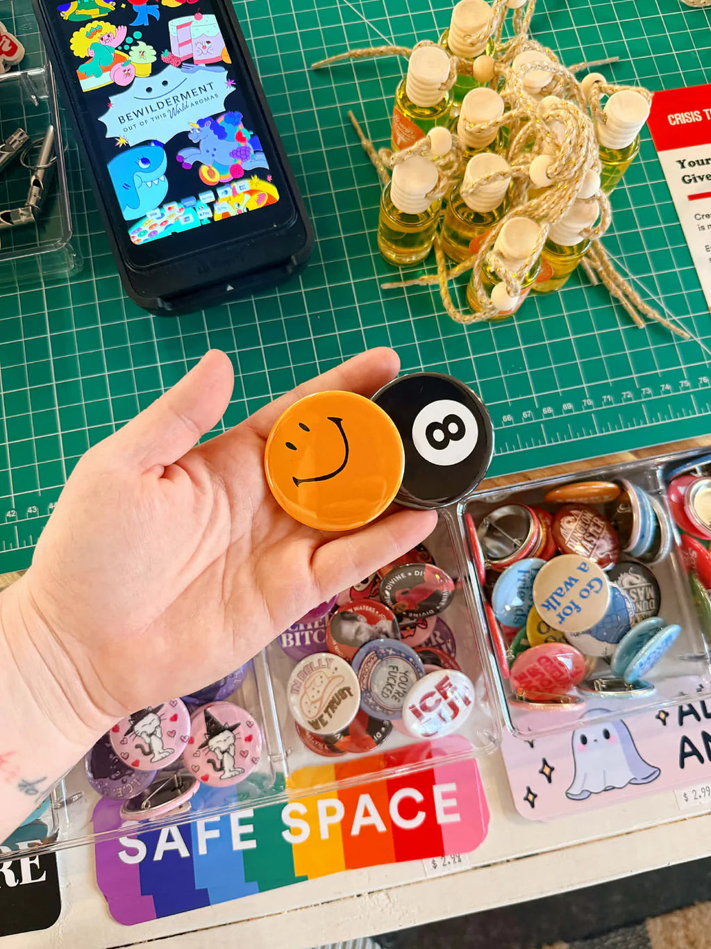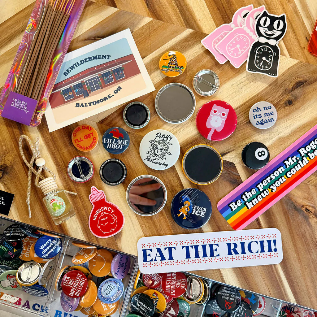 Big, bold, and made to be seen. Our 2.25” pinback buttons feature vibrant, high-quality art sealed under a glossy protective finish, pressed into a sturdy metal shell with a secure pin backing. Perfect for jackets, totes, backpacks, or anywhere you want your personality (or politics) front and center. Designed by humans. Printed on art print quality paper. Pressed by perfectionists.