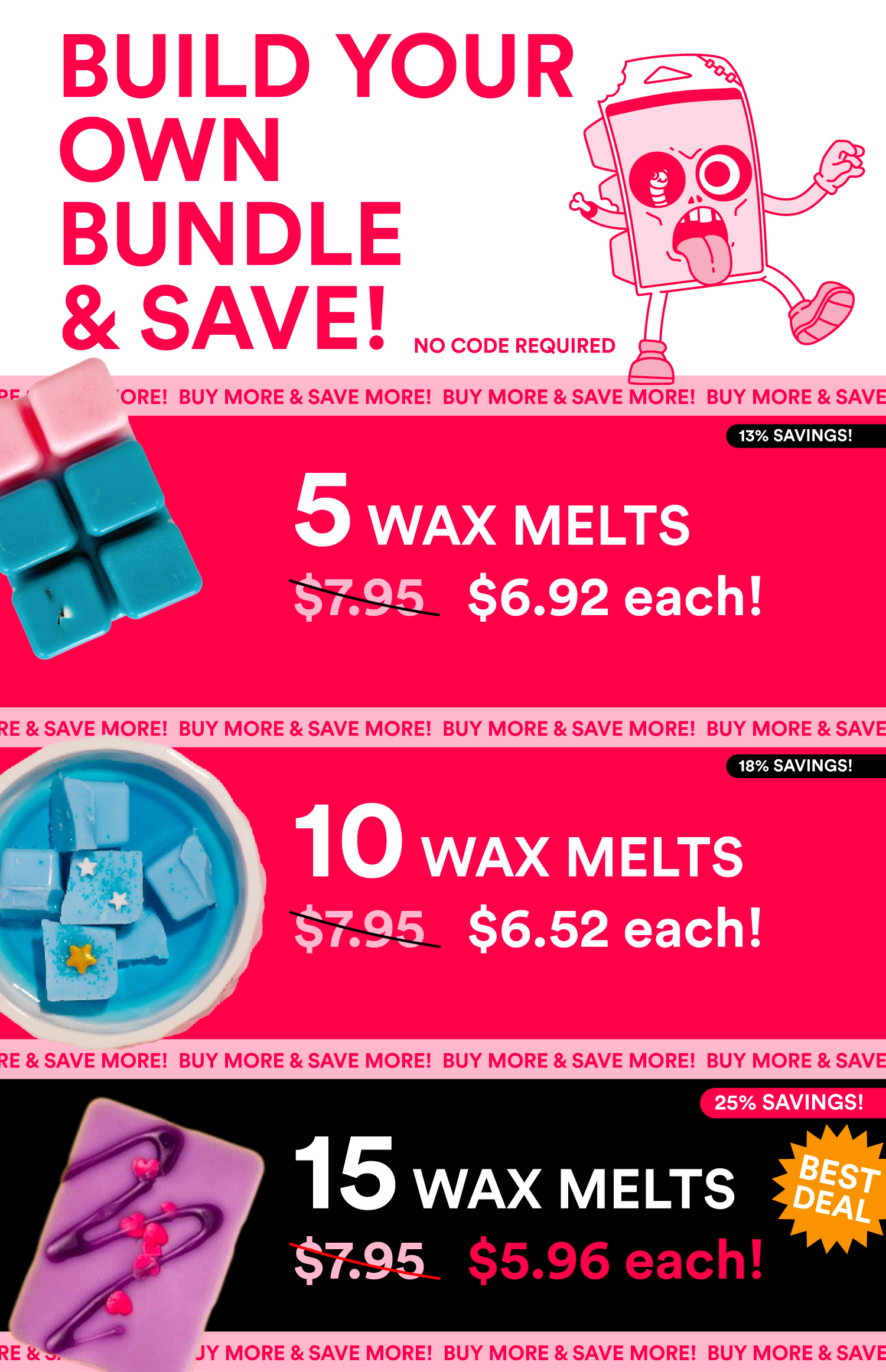 How To Use: Gently press on the edges of the bars to split them into their individual cubes. Pull one cube out and pop it in your warmer! One cube is designed to last a week before needing to be replaced. Wax warmers should generally be left on for 4 to 8 hours at a time, and turned off when not in use, especially overnight.